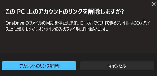 「アカウントのリンクを解除」をクリックするとリンク解除