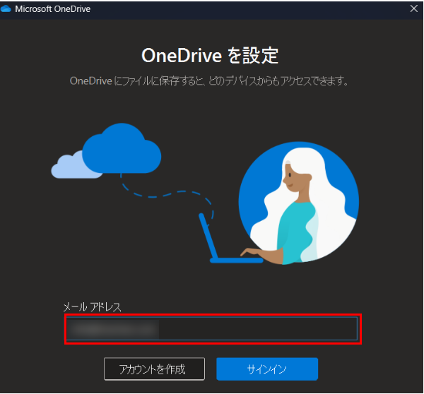 マイクロソフトアカウントの「メールアドレスを」入力し、「サインイン」