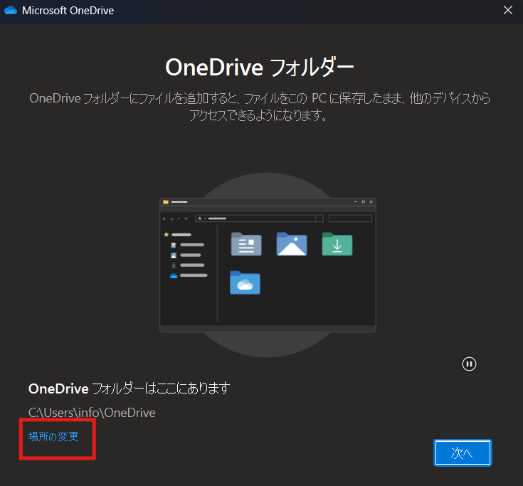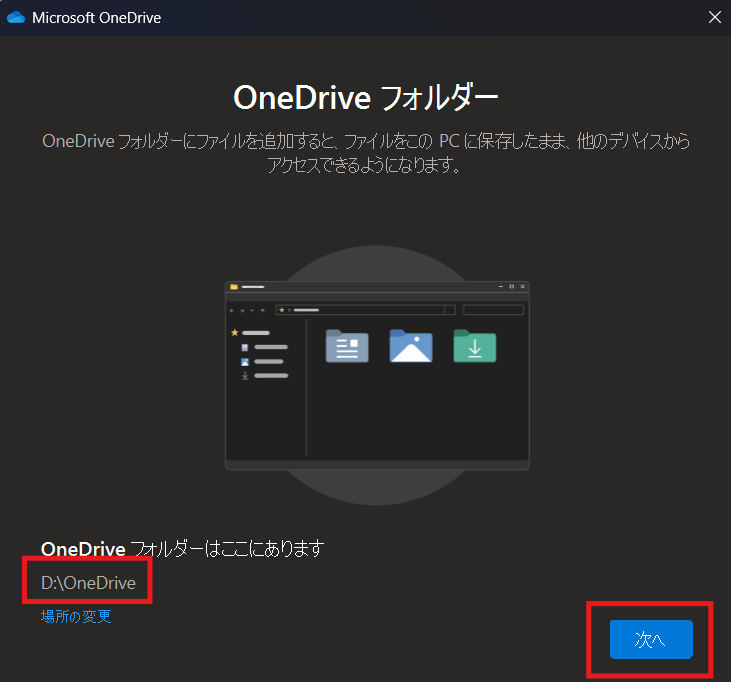Cドライブの空き容量が少なくなってきたため、OneDriveの同期先をDドライブへ変更しました。